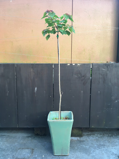 2年目のナンキンハゼ。ナンキンハゼの実を食べたキジバトが我が家のプランターにフンを落として発芽したんじゃないかな。この春、三方に枝葉を広げ始めたので嬉しい。アカメガシワみたいに、新葉は赤い。